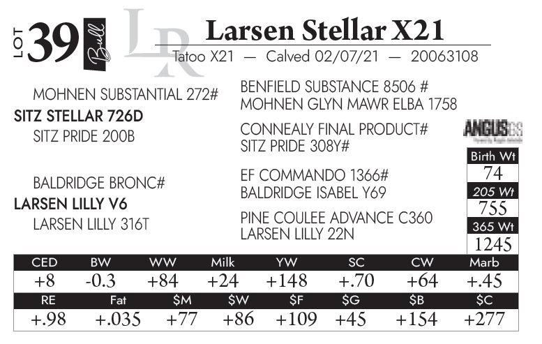Please contact Larsen Ranch Angus after the sale to settle purchases!