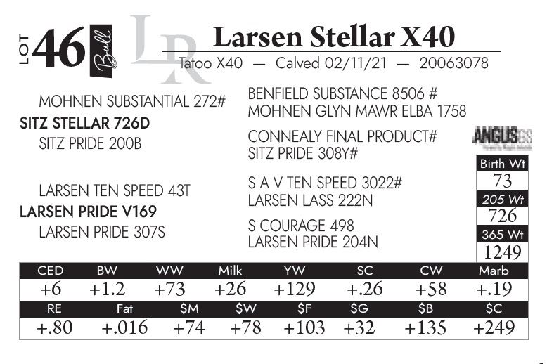 Please contact Larsen Ranch Angus after the sale to settle purchases!
