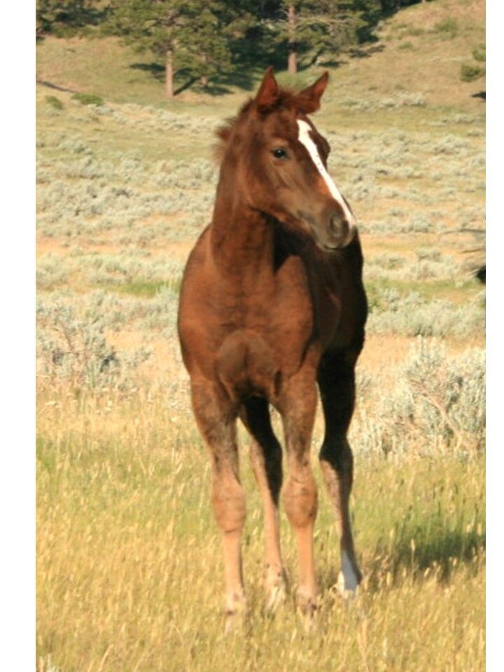 Whinny- a first time mamma, produced a good one. Honey is a very feminine filly with a beautiful chestnut color to boot. With her breeding she will be an excellent show horse prospect. She has a friendly attitude and will make a great youth project horse. Weaned 30+ days, UTD on shots and dewormed. Coggins tested and ready to go. 406-427-5420.