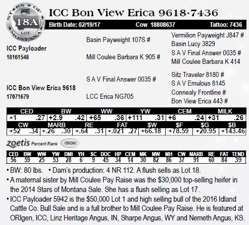 • BW: 80 lbs. • Dam’s production: 4 NR 112. A fl ush sells as Lot 18.