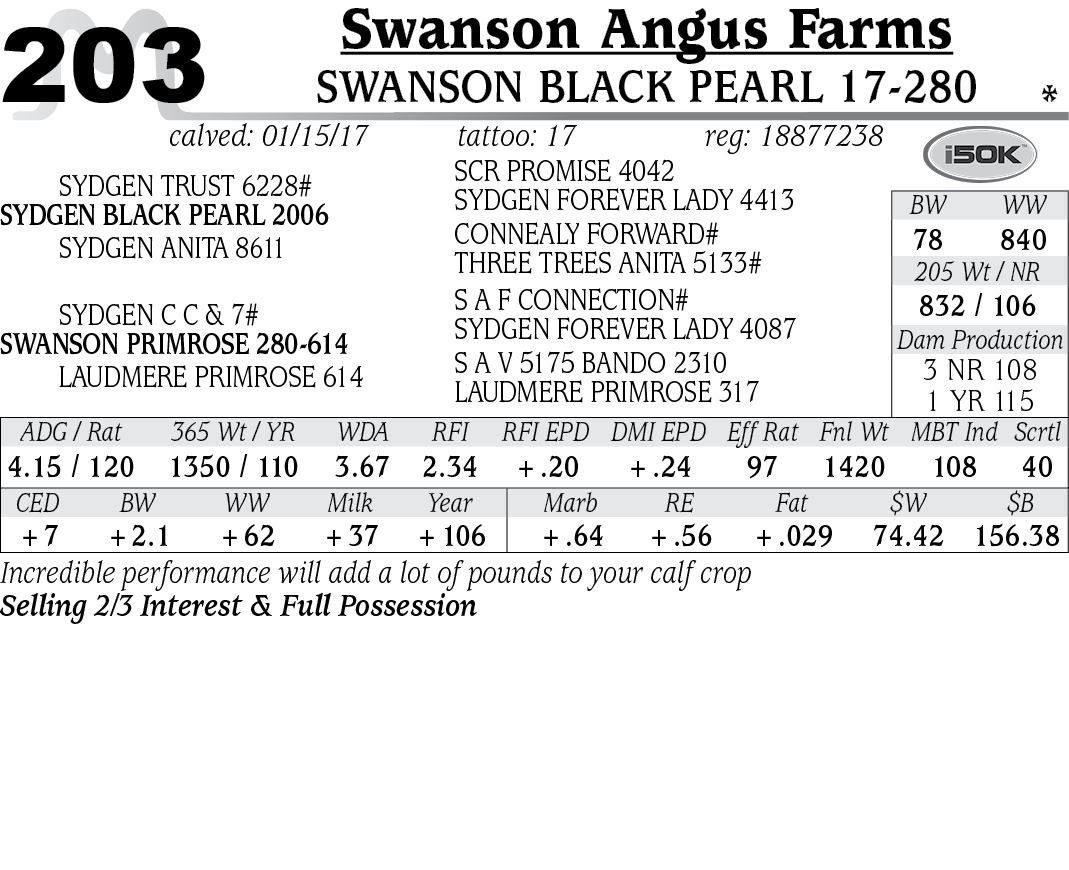 Lot - 203 - Swanson Black Pearl 17-280