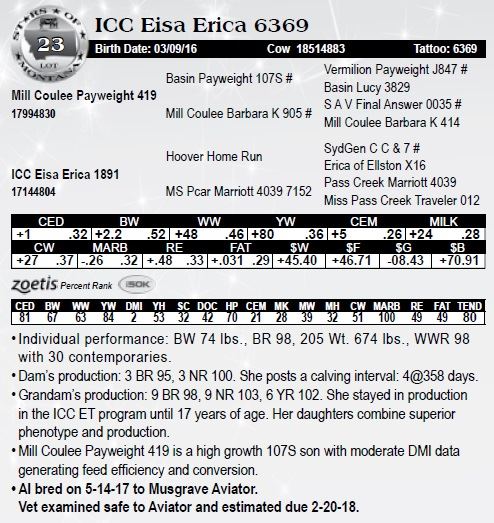 • Mill Coulee Payweight 419 is a high growth 107S son with moderate DMI data