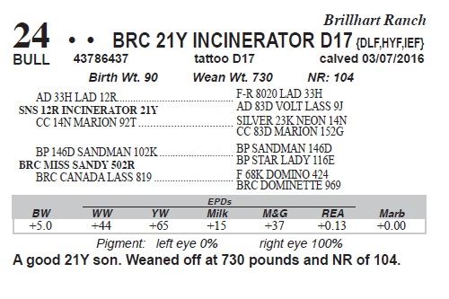 bull if one of equal quality is available by seller. All injured bulls must be