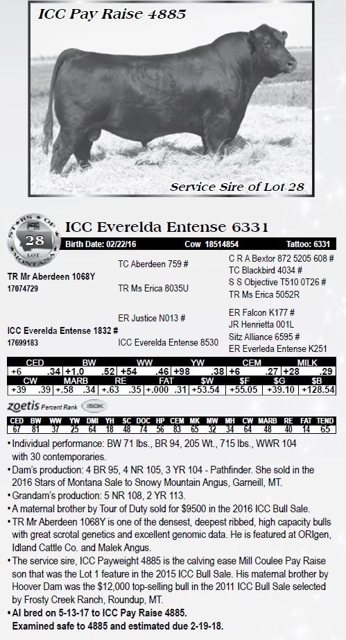 • The service sire, ICC Payweight 4885 is the calving ease Mill Coulee Pay Raise