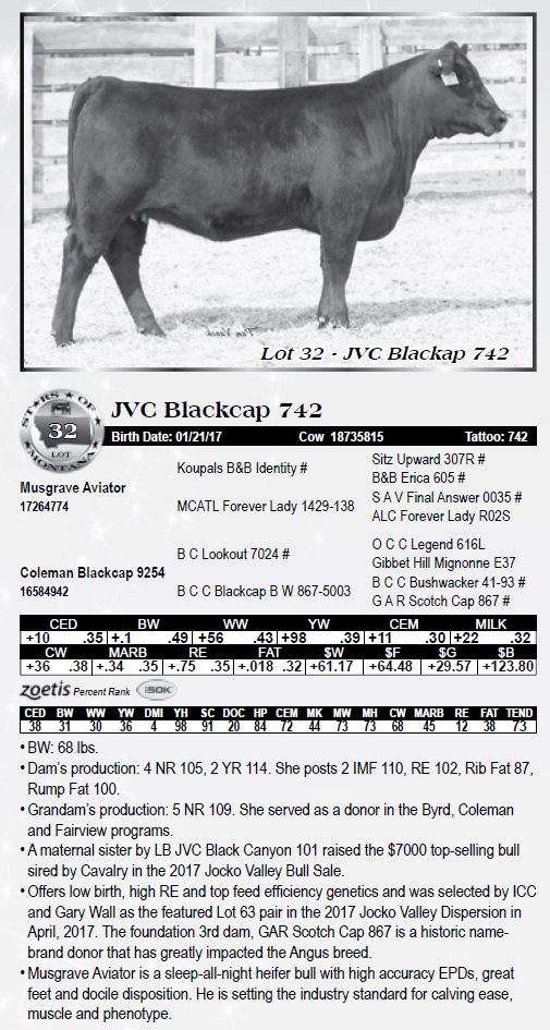• A maternal sister by LB JVC Black Canyon 101 raised the $7000 top-selling bull