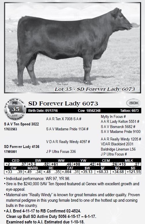 • Sire is the $240,000 SAV Ten Speed featured at Genex with excellent growth and
