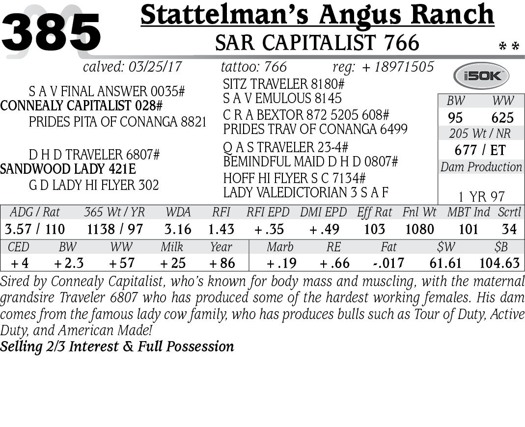 Each animal will be sold to the highest bidder with the auctioneer settling any dispute as to bids. All cattle will be sold according to the health regulations of the State of Montana. Interstate health certificates will be furnished. On all registered cattle in the sale, registration papers will be transferred to their new owner at the seller’s expense.