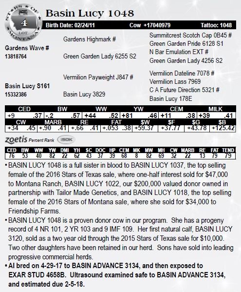 • BASIN LUCY 1048 is a full sister in blood to BASIN LUCY 1037, the top selling