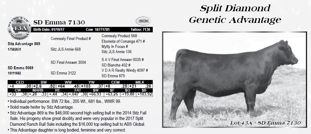 • Sitz Advantage 869 is the $48,000 second high selling bull in the 2014 Sitz Fall