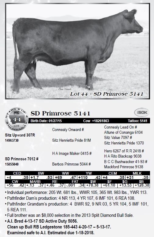 • Full brother was an $8,000 selection in the 2013 Split Diamond Bull Sale.