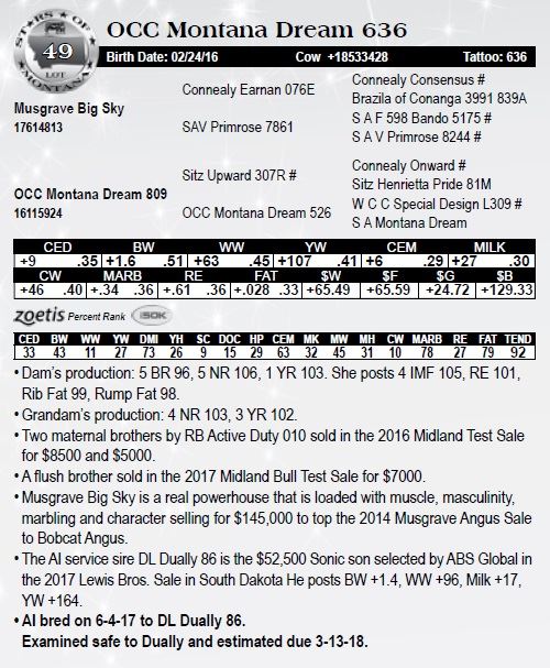 the 2017 Lewis Bros. Sale in South Dakota He posts BW +1.4, WW +96, Milk +17,