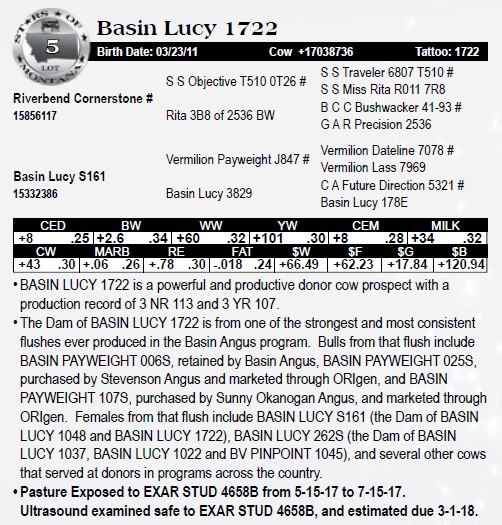 • The Dam of BASIN LUCY 1722 is from one of the strongest and most consistent