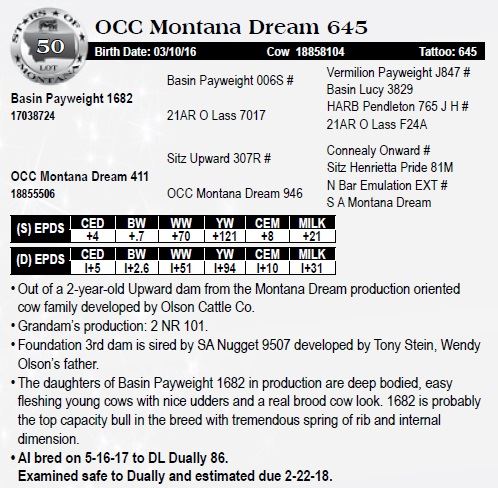 • Out of a 2-year-old Upward dam from the Montana Dream production oriented