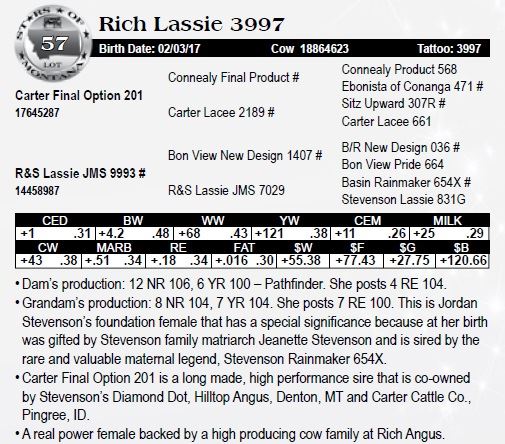 by Stevenson’s Diamond Dot, Hilltop Angus, Denton, MT and Carter Cattle Co.,