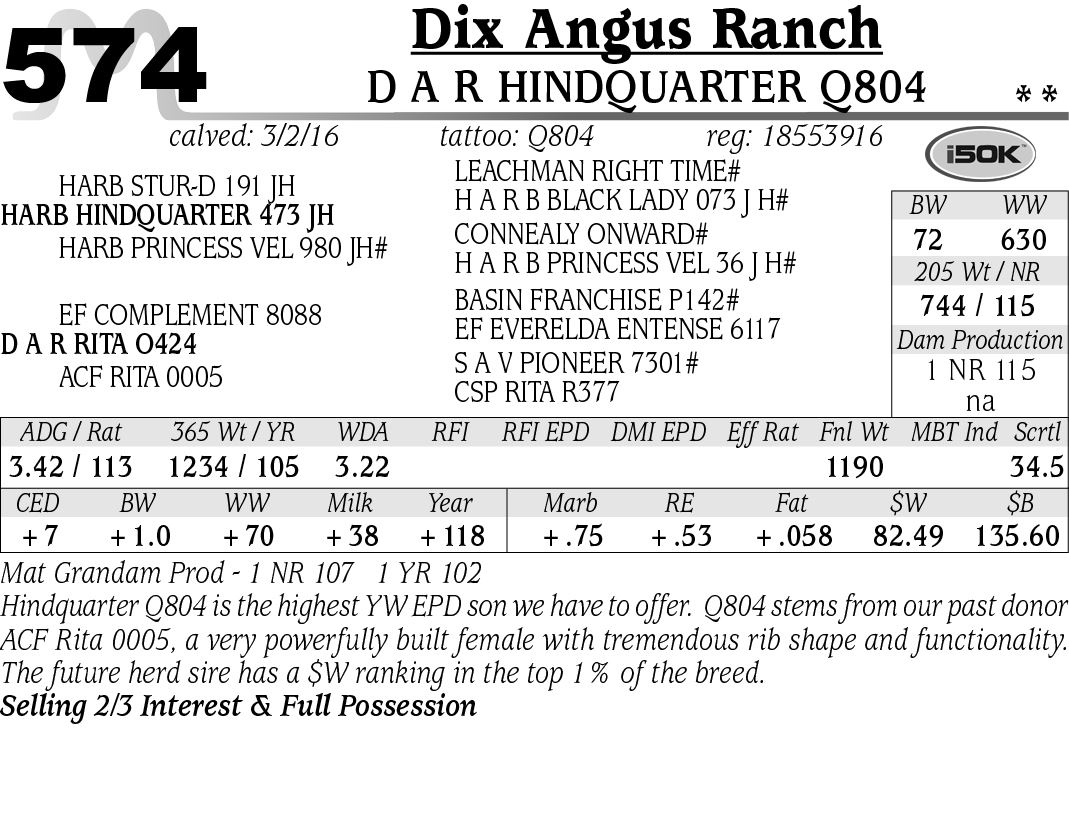 Lot 574 - D A R Hindquarter Q804