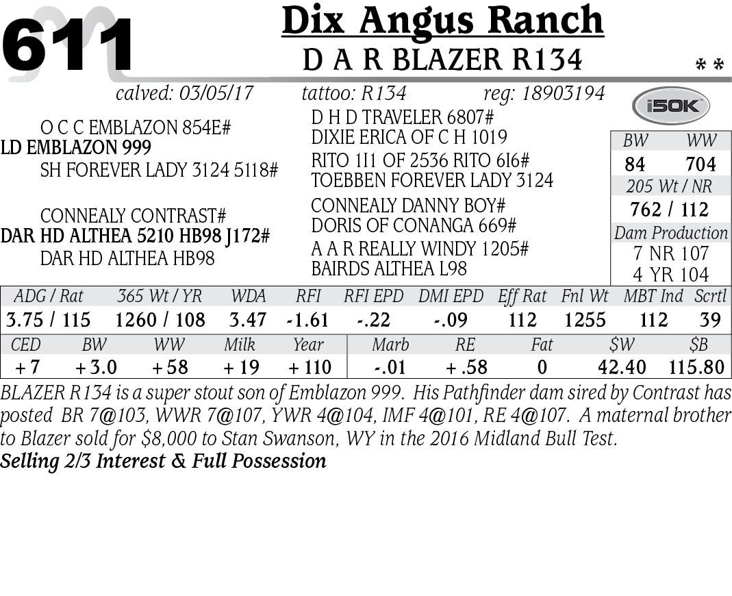 Each animal will be sold to the highest bidder with the auctioneer settling any dispute as to bids. All cattle will be sold according to the health regulations of the State of Montana. Interstate health certificates will be furnished. On all registered cattle in the sale, registration papers will be transferred to their new owner at the seller’s expense.