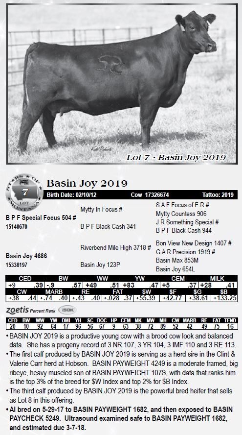 • BASIN JOY 2019 is a productive young cow with a brood cow look and balanced