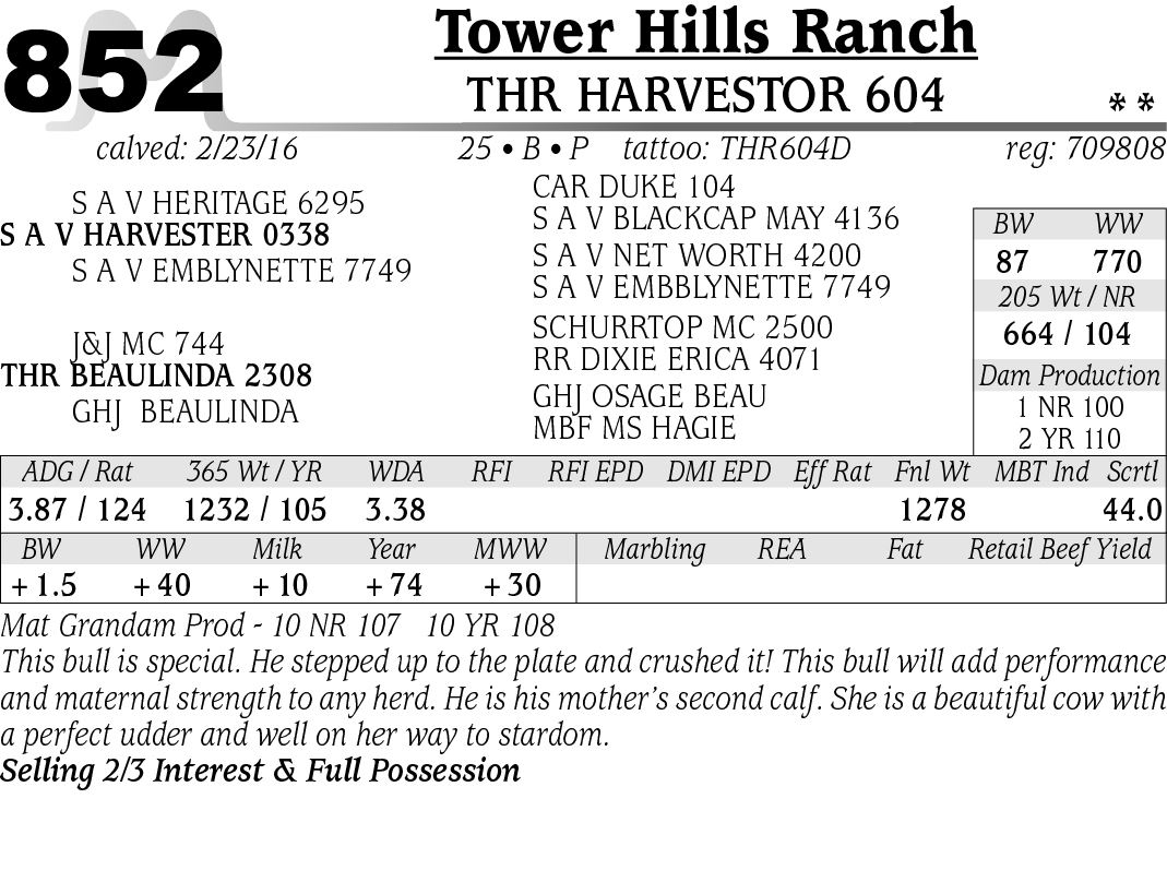 Each animal will be sold to the highest bidder with the auctioneer settling any dispute as to bids. All cattle will be sold according to the health regulations of the State of Montana. Interstate health certificates will be furnished. On all registered cattle in the sale, registration papers will be transferred to their new owner at the seller’s expense.