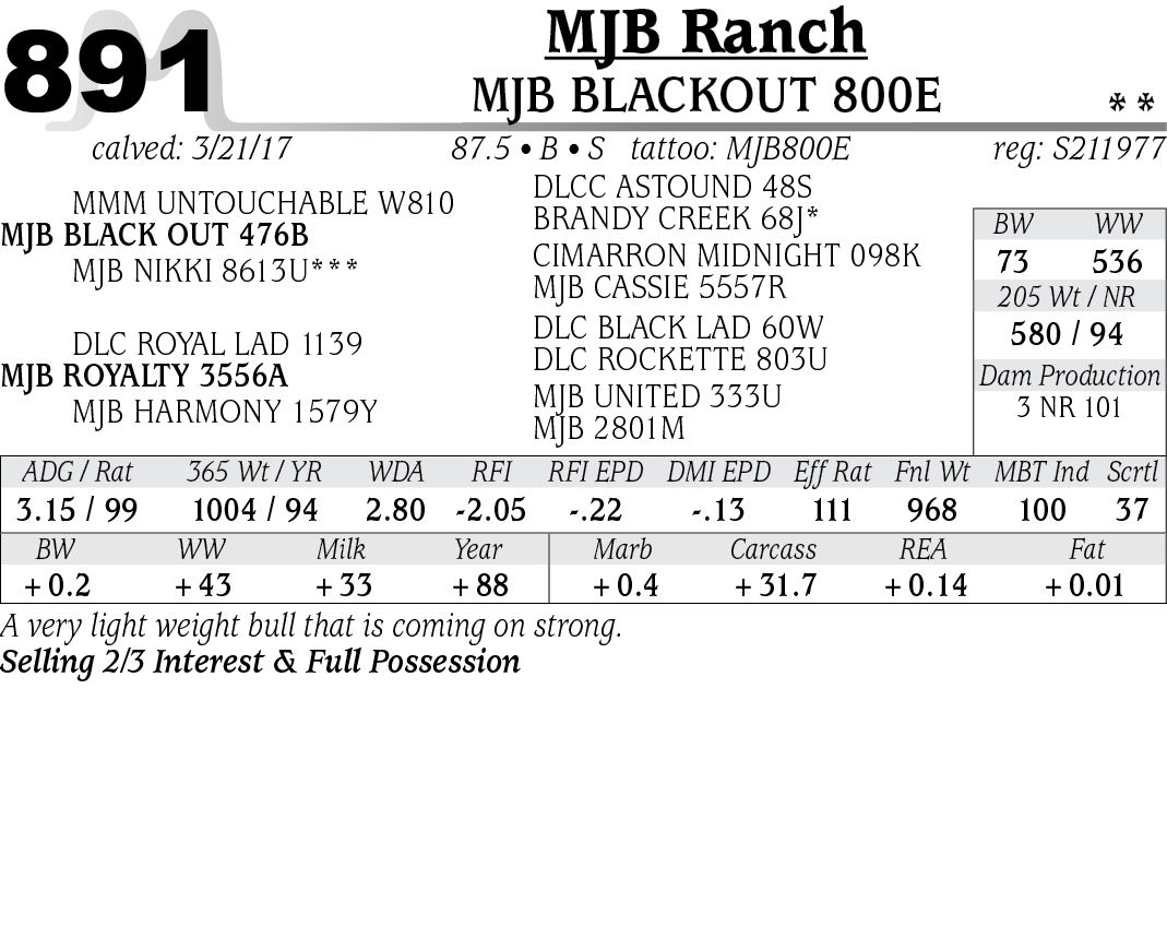 Lot - 891 - MJB BLACKOUT 800E