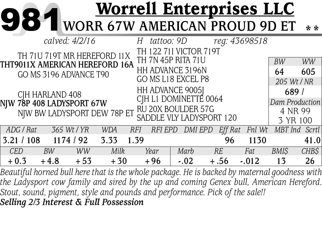 Lot 981 - WORR 67W AMERICAN PROUD 9D ET