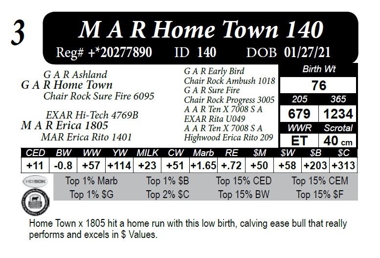 Home Town x 1805 hit a home run with this low birth, calving ease bull that really