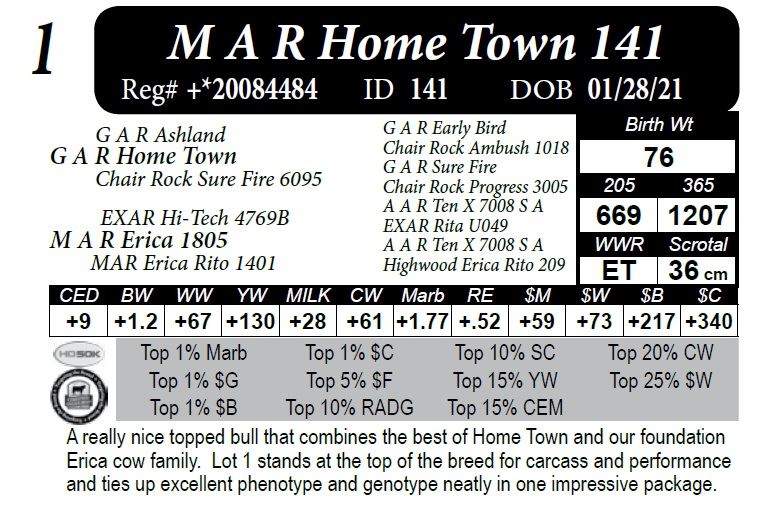 Erica cow family. Lot 1 stands at the top of the breed for carcass and performance