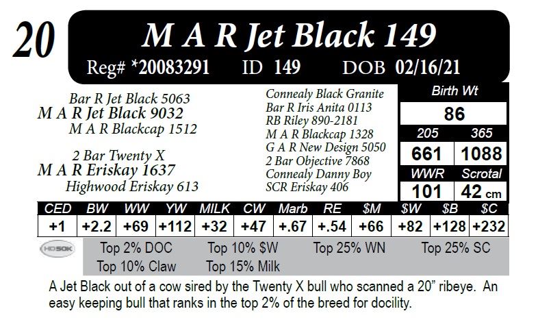 A Jet Black out of a cow sired by the Twenty X bull who scanned a 20” ribeye. An