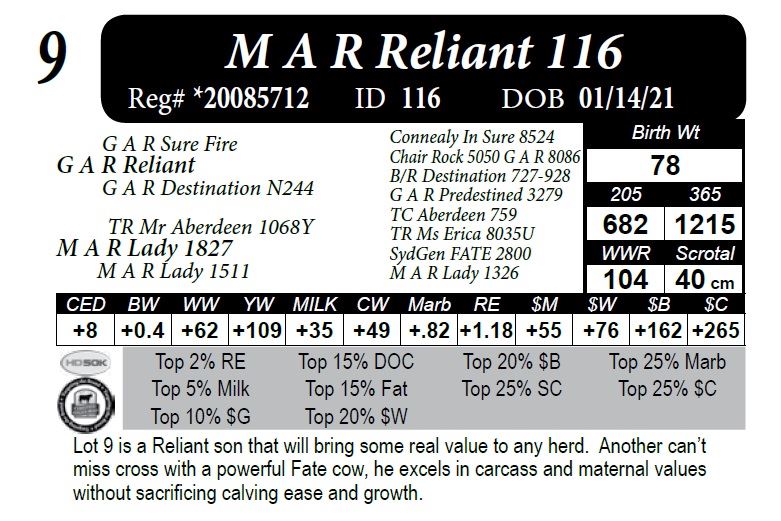 Lot 9 is a Reliant son that will bring some real value to any herd. Another can’t