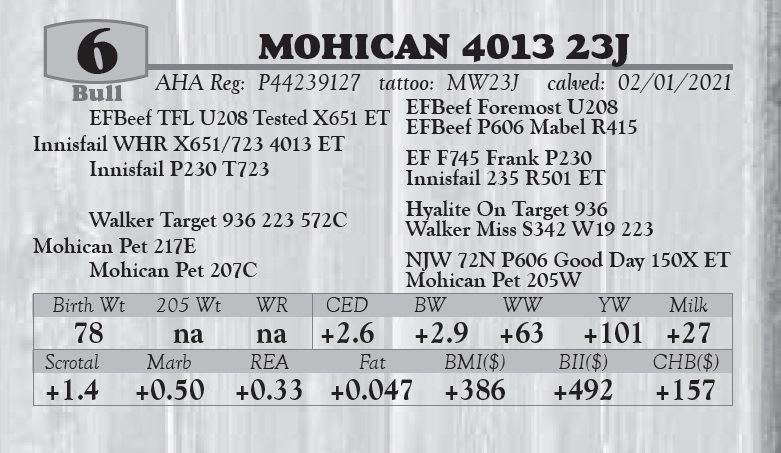 or more. A $50.00 discount per bull if taken home the day of the sale.