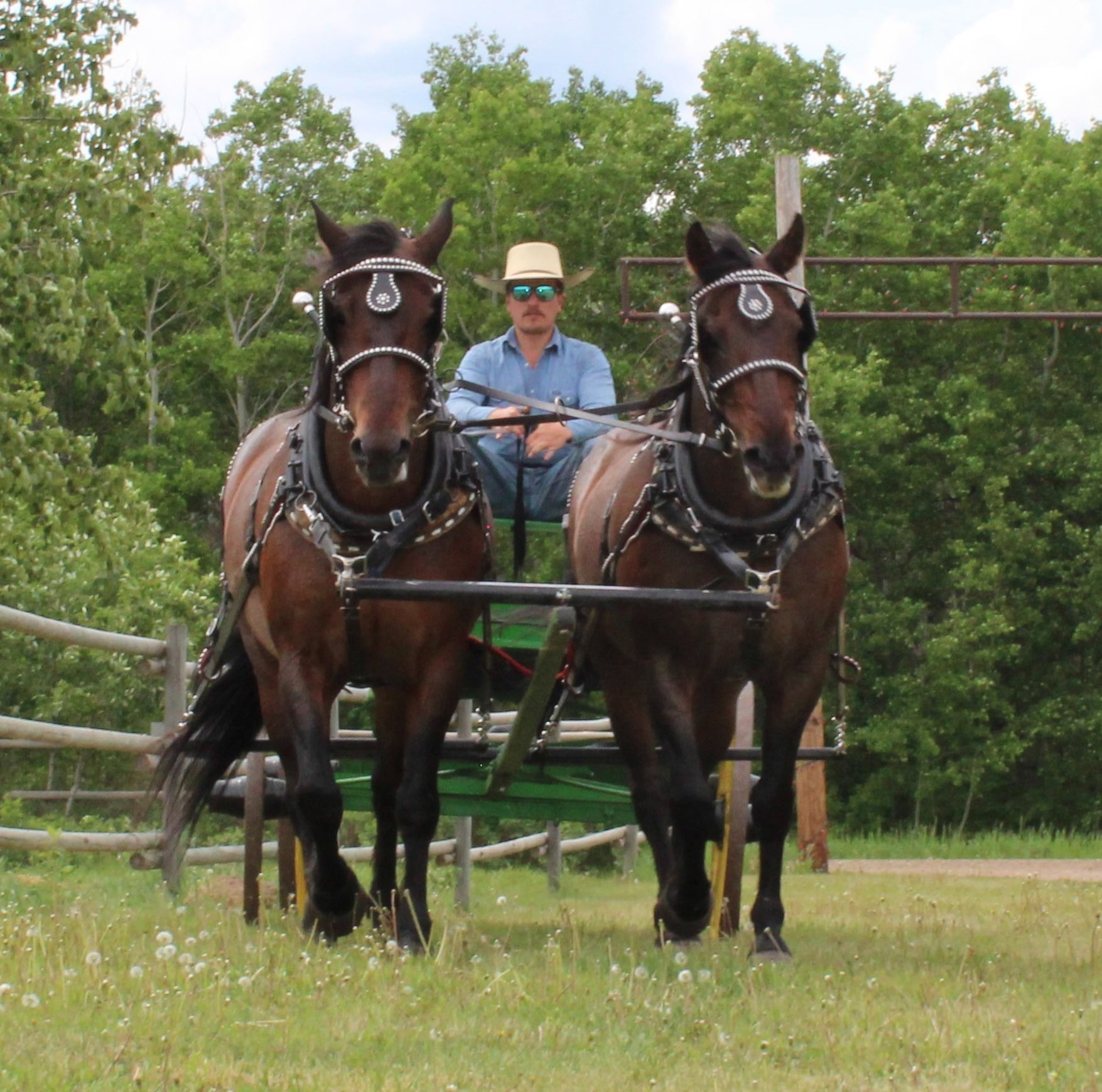 Matt and Morgan are 12 and 13 year old Percheron/Quarter Horse geldings that stand 15.1 and 15.3 hands. They are a very well broke, easy driving team. They drive well in town and on the ranch. And a added bonus is that they have even been rode! Lots of foot and bone with very sharp color in this great team. Any questions, call MJ at 780-210-2503.