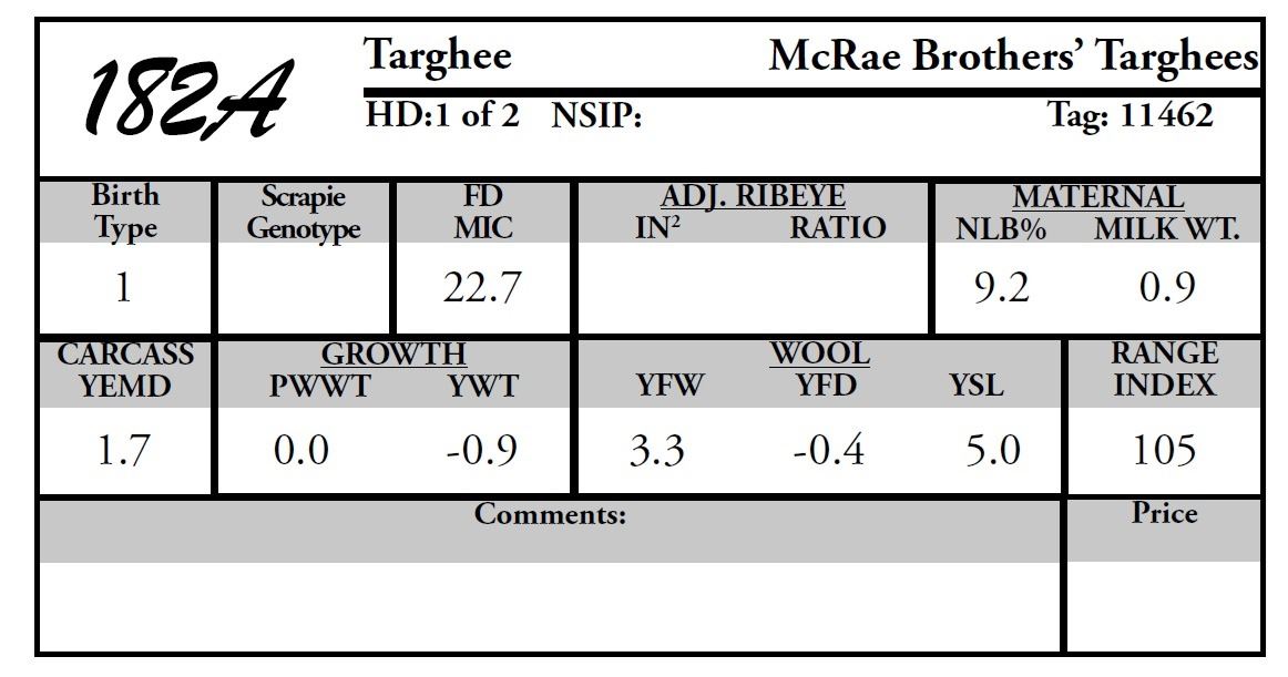 Consignor: McRae Brothers' Targhee