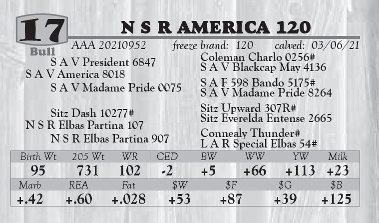 or more. A $50.00 discount per bull if taken home the day of the sale.