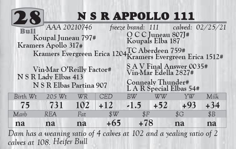 or more. A $50.00 discount per bull if taken home the day of the sale.