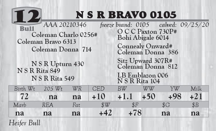 or more. A $50.00 discount per bull if taken home the day of the sale.