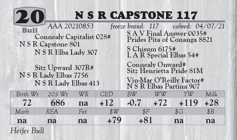or more. A $50.00 discount per bull if taken home the day of the sale.