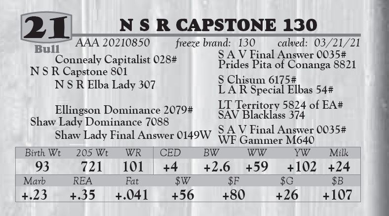 or more. A $50.00 discount per bull if taken home the day of the sale.
