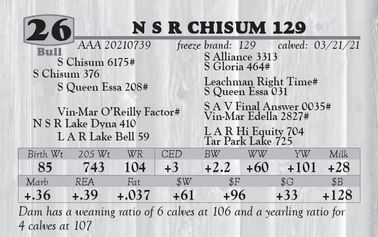 or more. A $50.00 discount per bull if taken home the day of the sale.