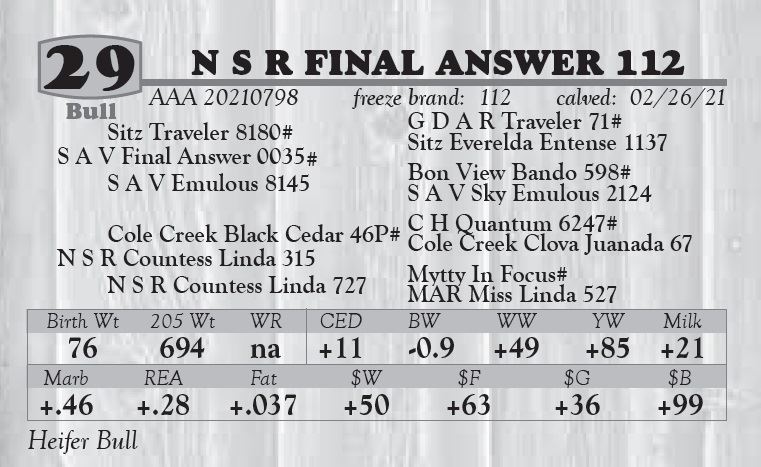 or more. A $50.00 discount per bull if taken home the day of the sale.