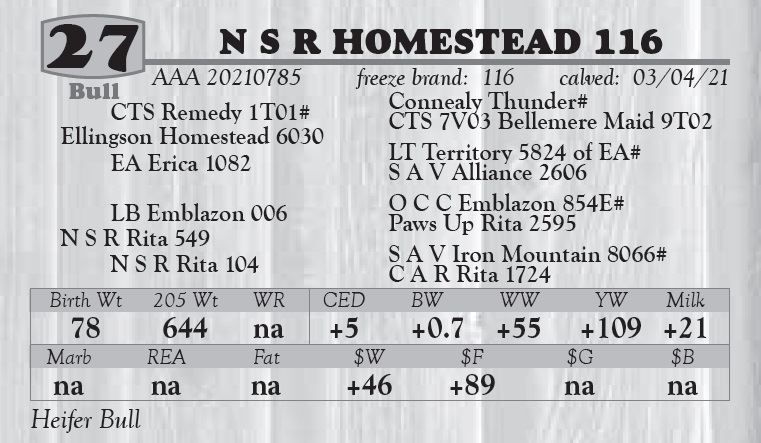 or more. A $50.00 discount per bull if taken home the day of the sale.