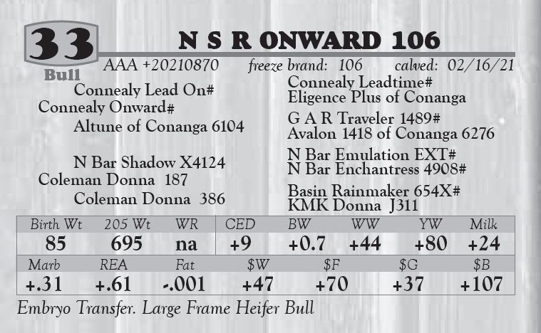 or more. A $50.00 discount per bull if taken home the day of the sale.