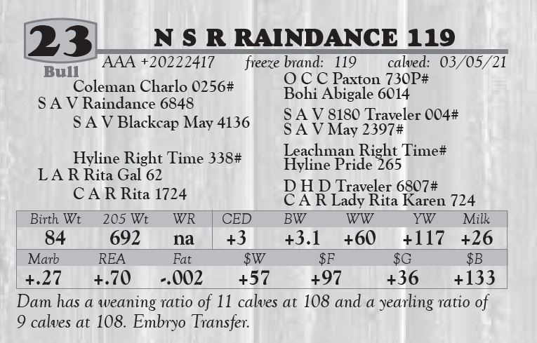 or more. A $50.00 discount per bull if taken home the day of the sale.
