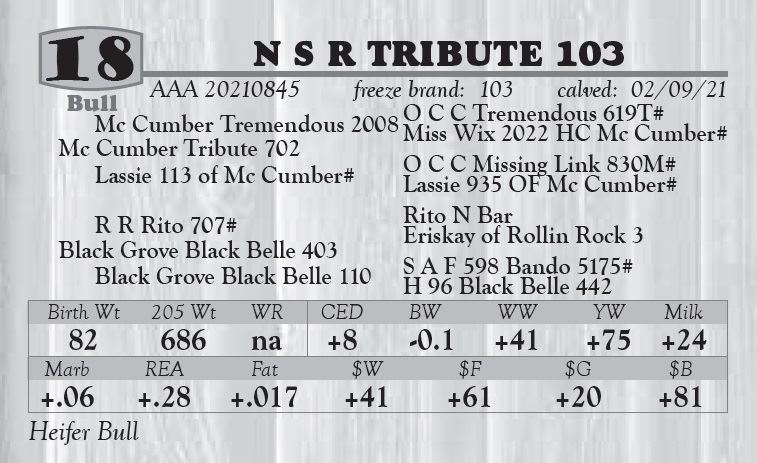 or more. A $50.00 discount per bull if taken home the day of the sale.
