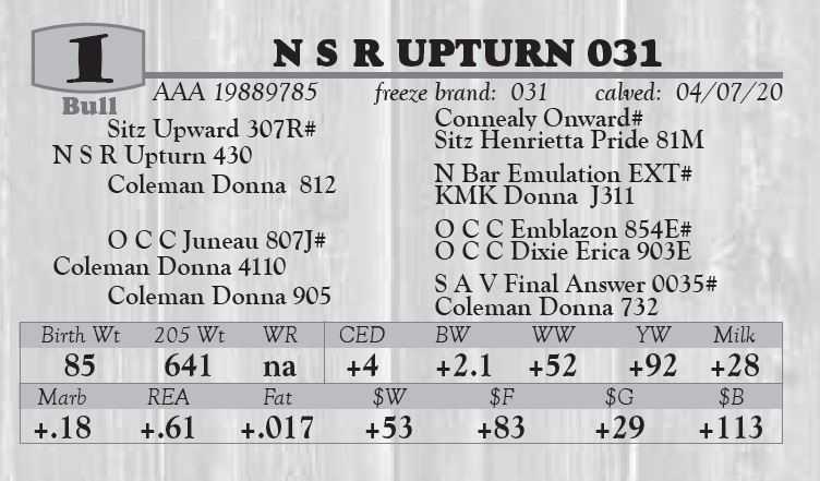 or more. A $50.00 discount per bull if taken home the day of the sale.