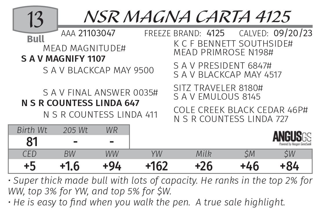 or more. A $50.00 discount per bull if taken home the day of the sale.