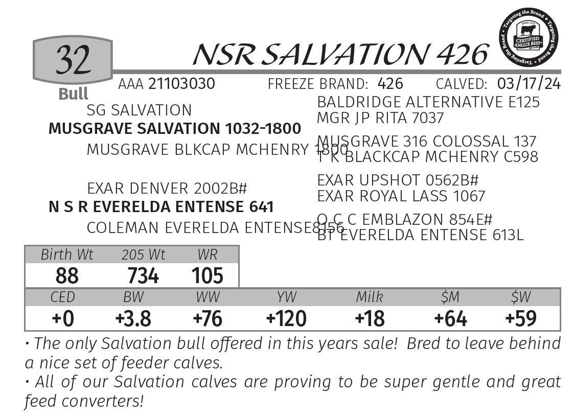• The only Salvation bull offered in this years sale! Bred to leave behind