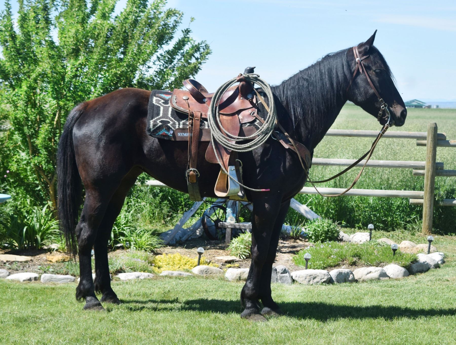Nicole is a big, beautiful mare that rides and drives. She is a very quiet mare that has a very nice neck rein and moves easily off leg pressure. She is very kind and gentle to be around. Nicole has been used in the branding pen and is a great horse on the trails. She is great to shoe and is one that is the same horse each time with long periods of time off. A pretty lady with a huge future! For more information call David at 406-380-1146.