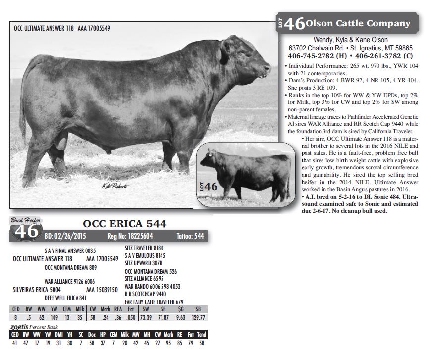 • Her sire, OCC Ultimate Answer 118 is a maternal