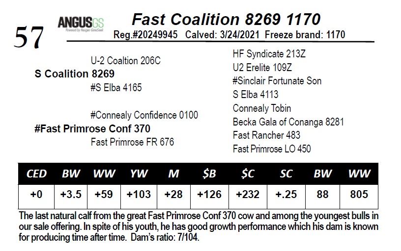 The last natural calf from the great Fast Primrose Conf 370 cow and among the youngest bulls in