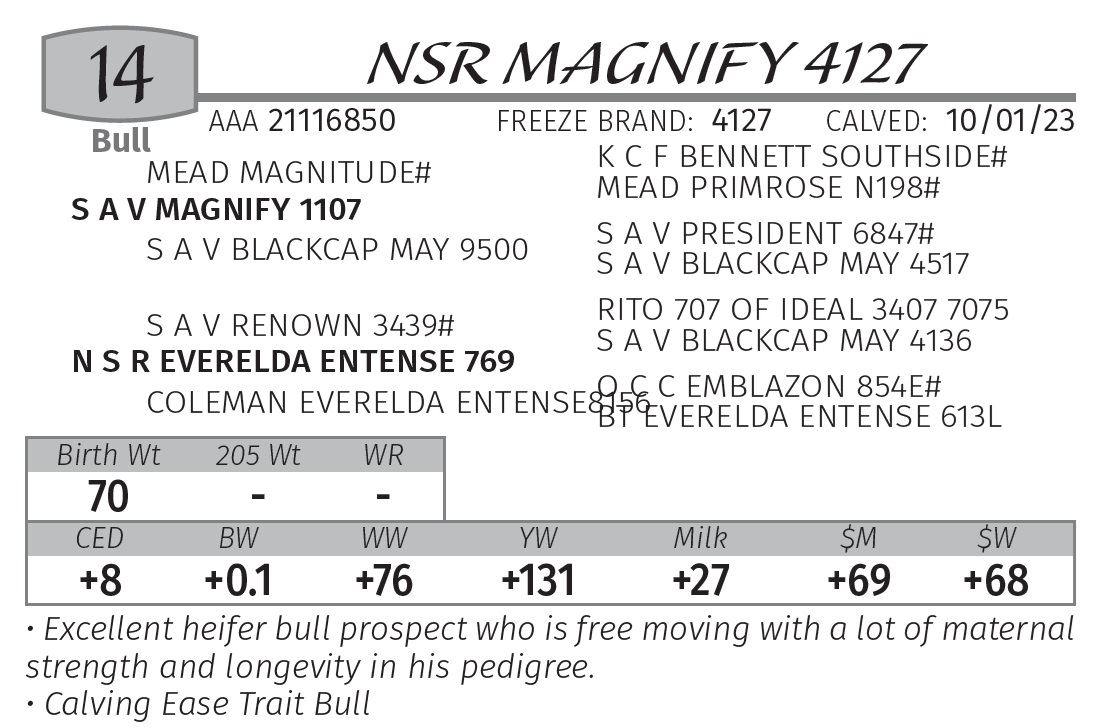 or more. A $50.00 discount per bull if taken home the day of the sale.
