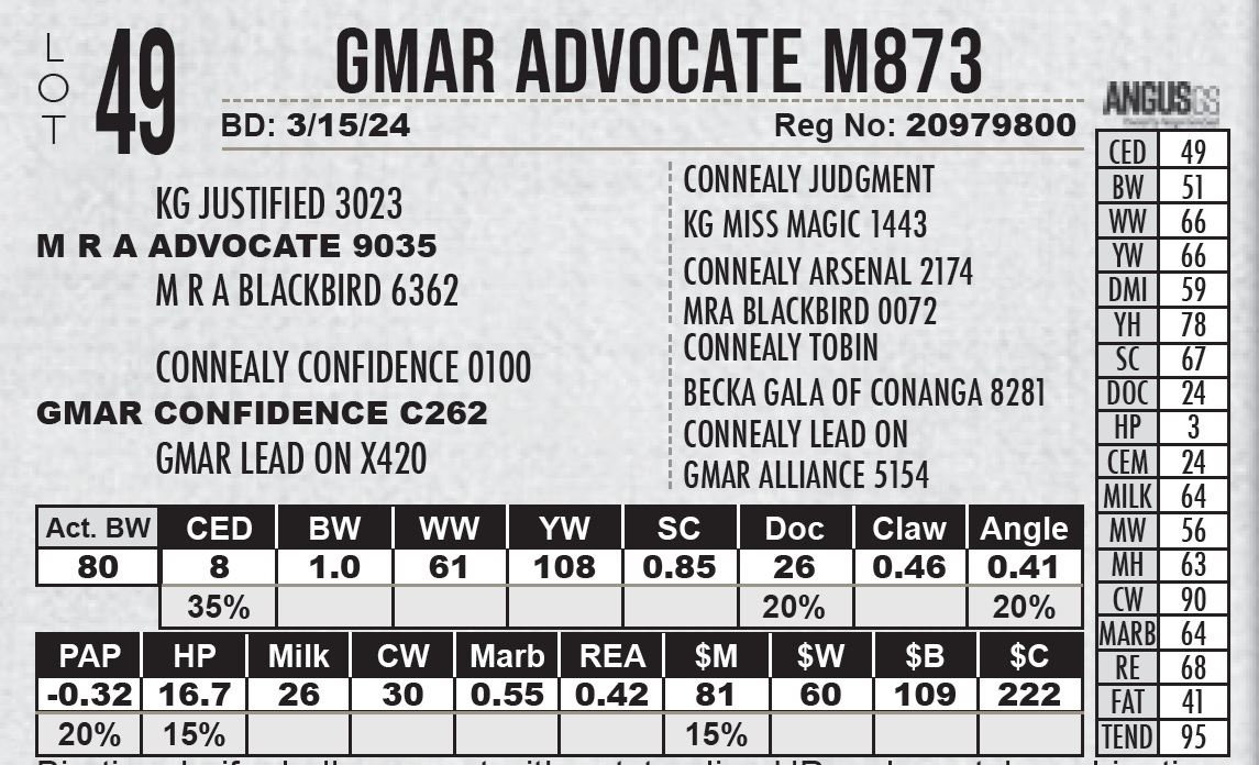This sale is being conducted under the suggested terms and conditions adopted by the American Angus Association effective March 16, 1992. except for those stated in the terms and